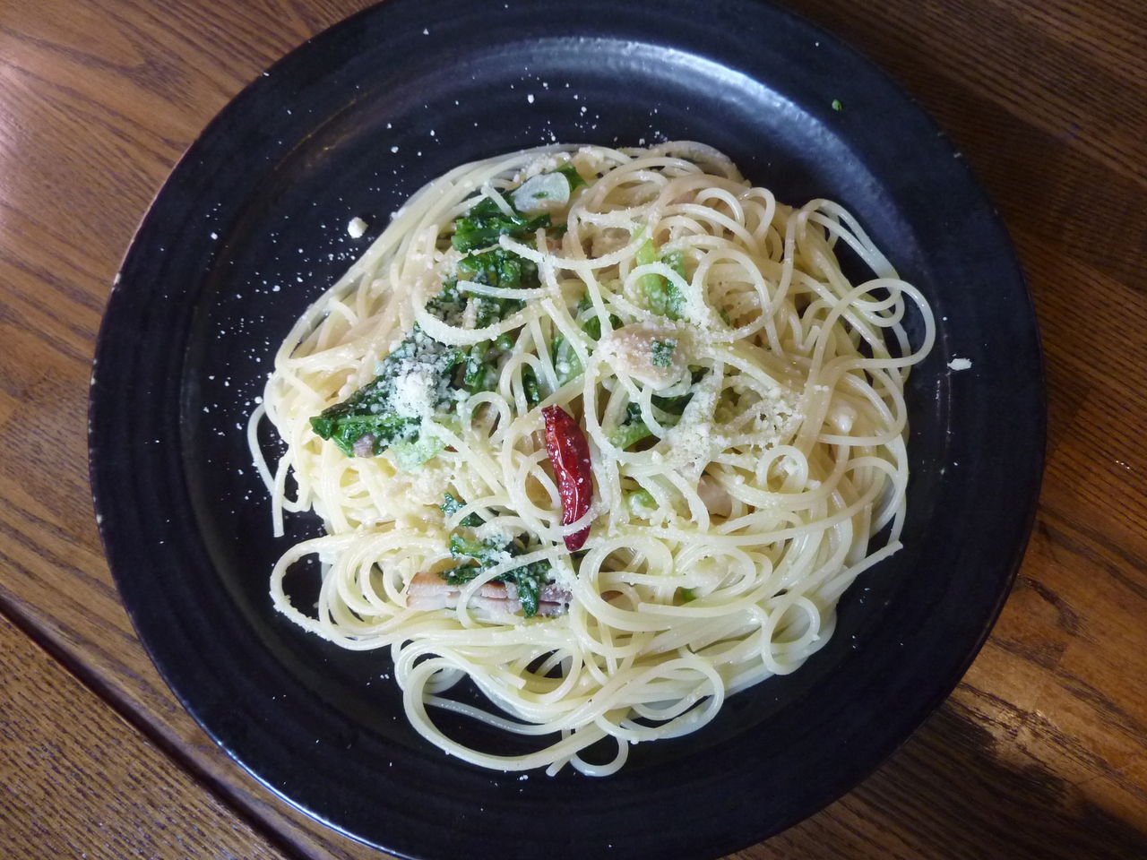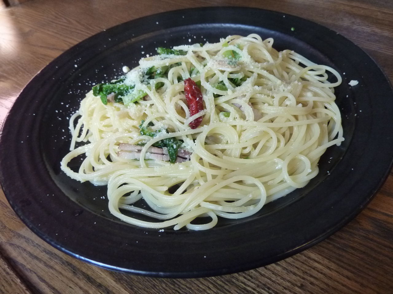 とりあえず日替わりスパゲティのチキンとほうれん草のスパゲティを注文しておいしく頂きました。