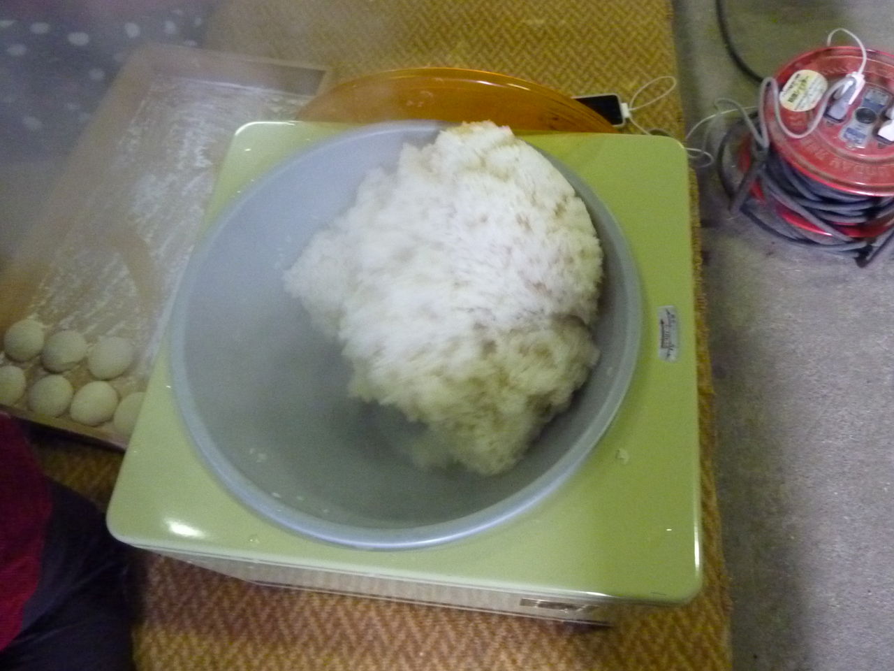 ついた餅はテーブルに移します。