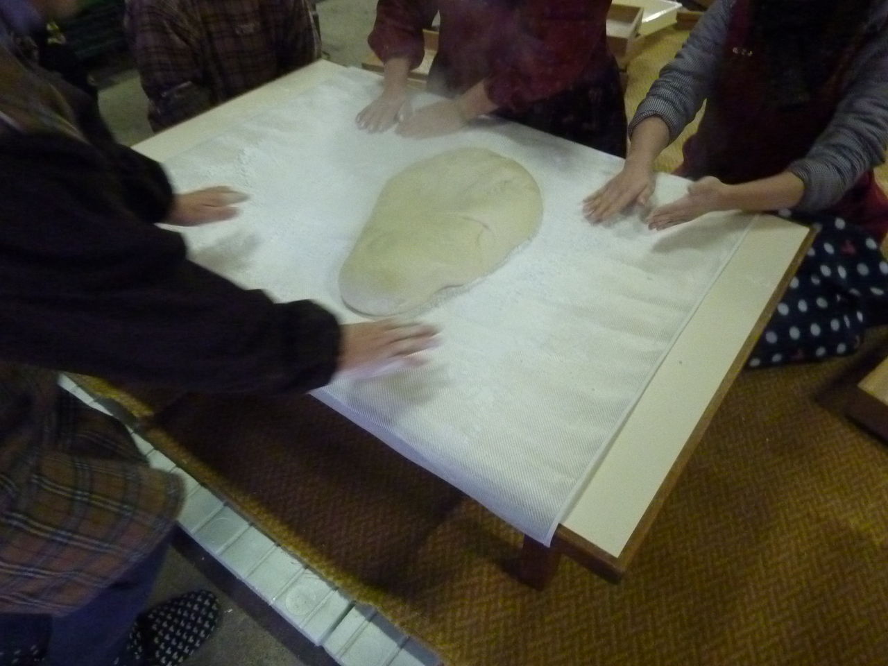 ある程度ついたところで、つき手を一人にして、ついて、こねて、というのを繰り返します。