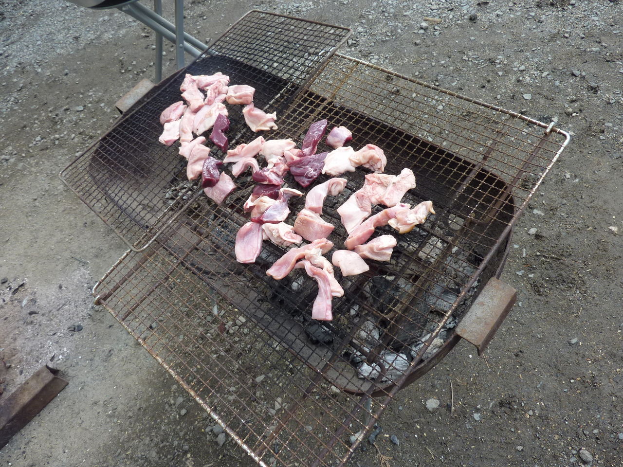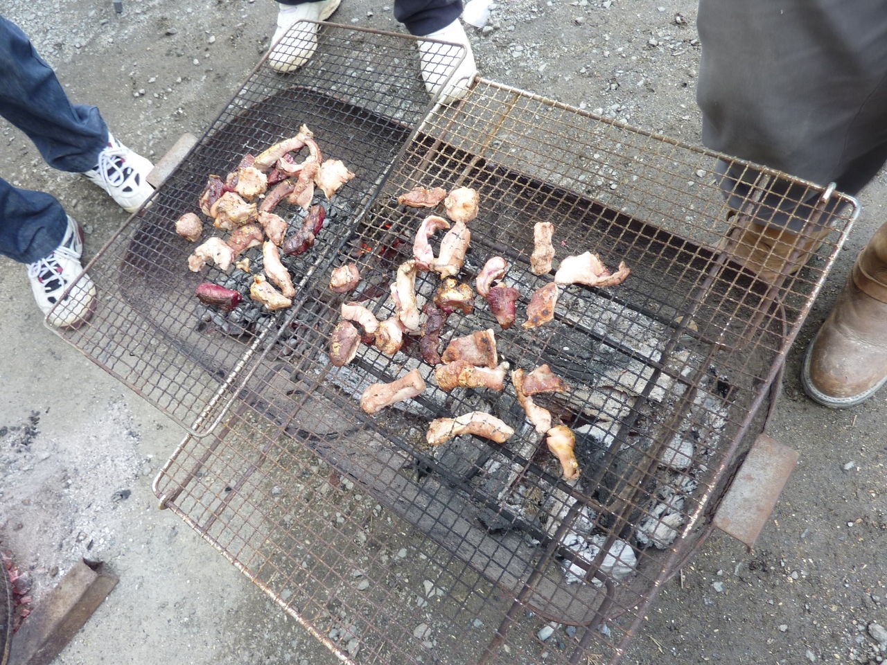 途中、いとこが猪肉のバーベキューの準備をしてくれました。