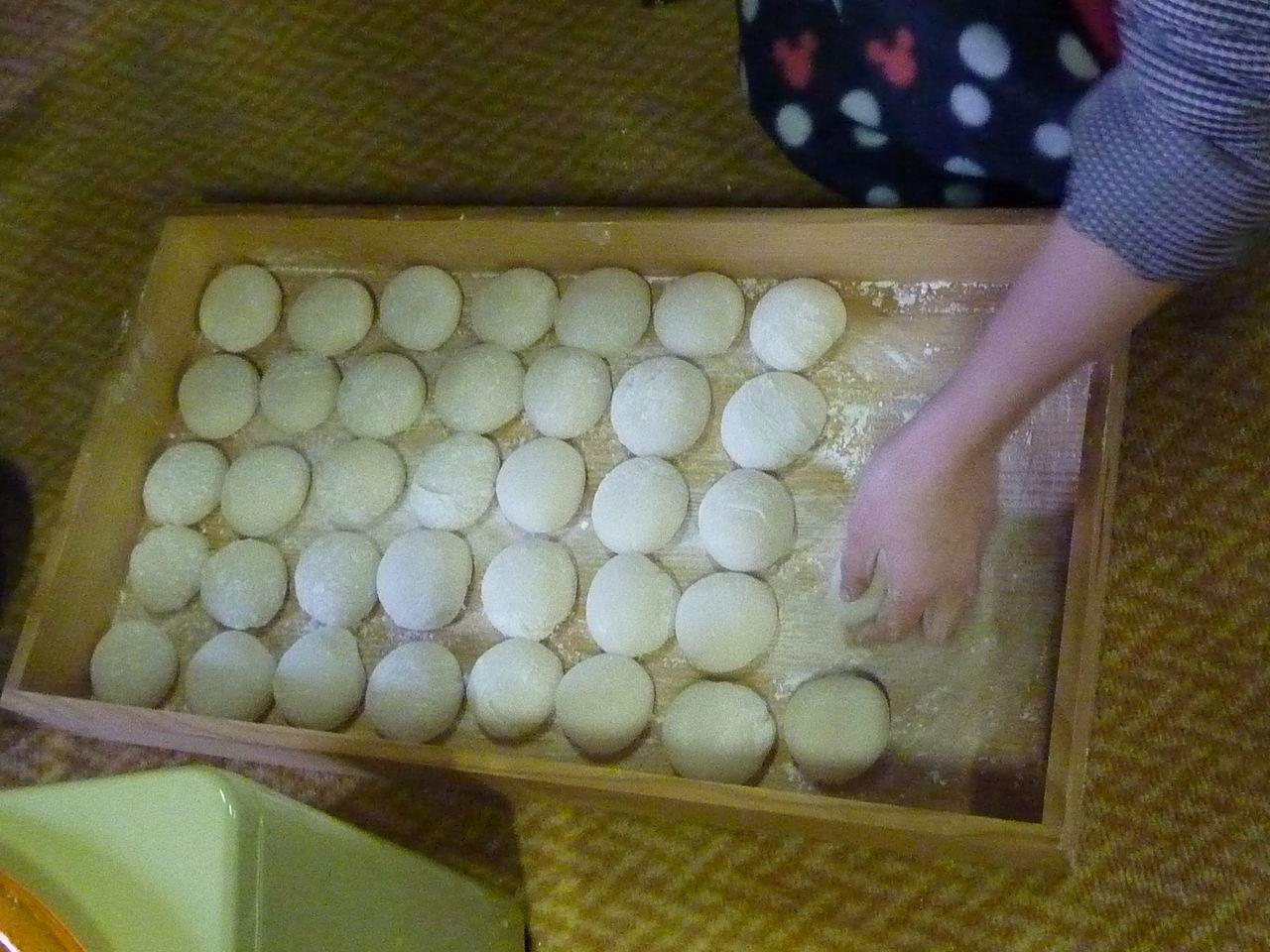 The talbes are for balling up the rice cake.