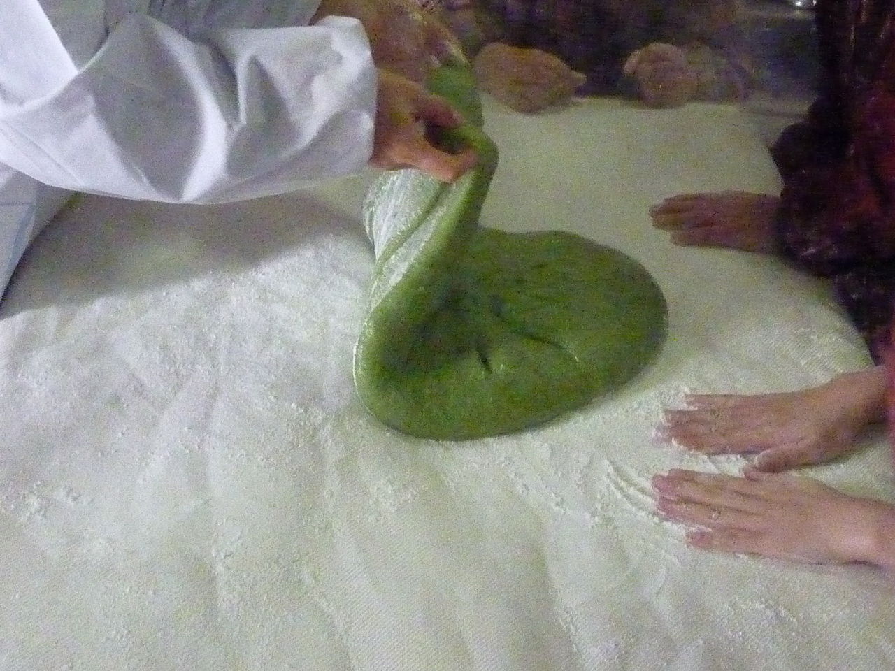 こねていくとこのようにまんべんなくよもぎが広がります。