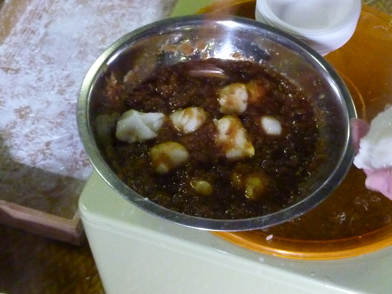 餅米はある程度の時間、予め水に浸しておきます。それをすくい出したものです。