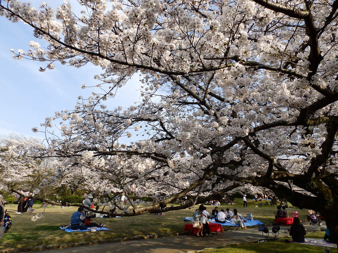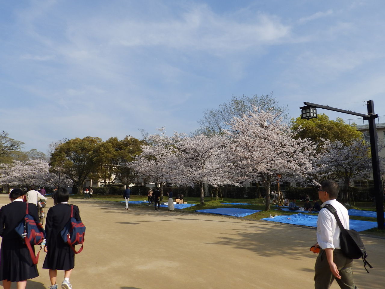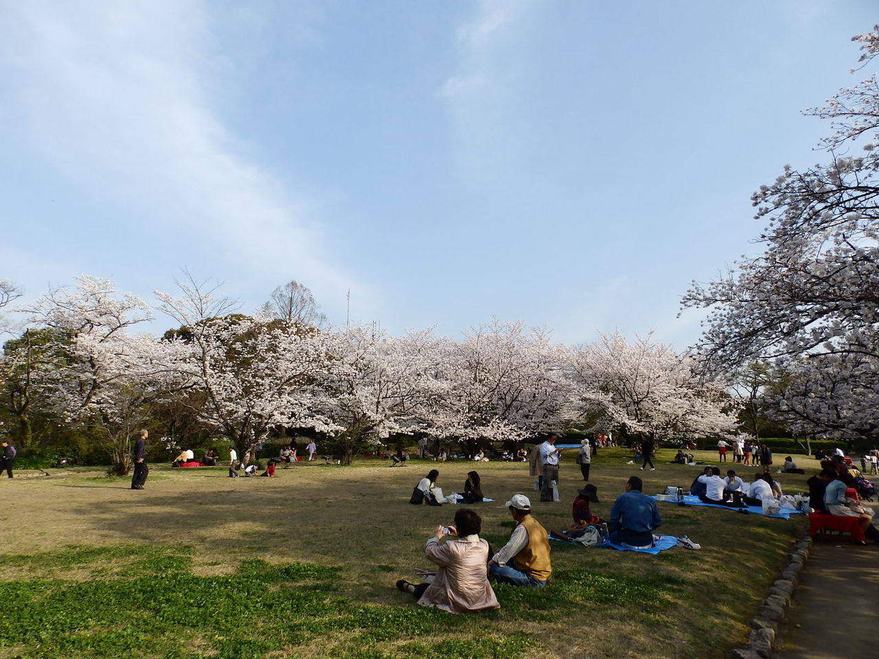 こちらではあちこちにシートが広げられて花見の宴会をしている人がいます。