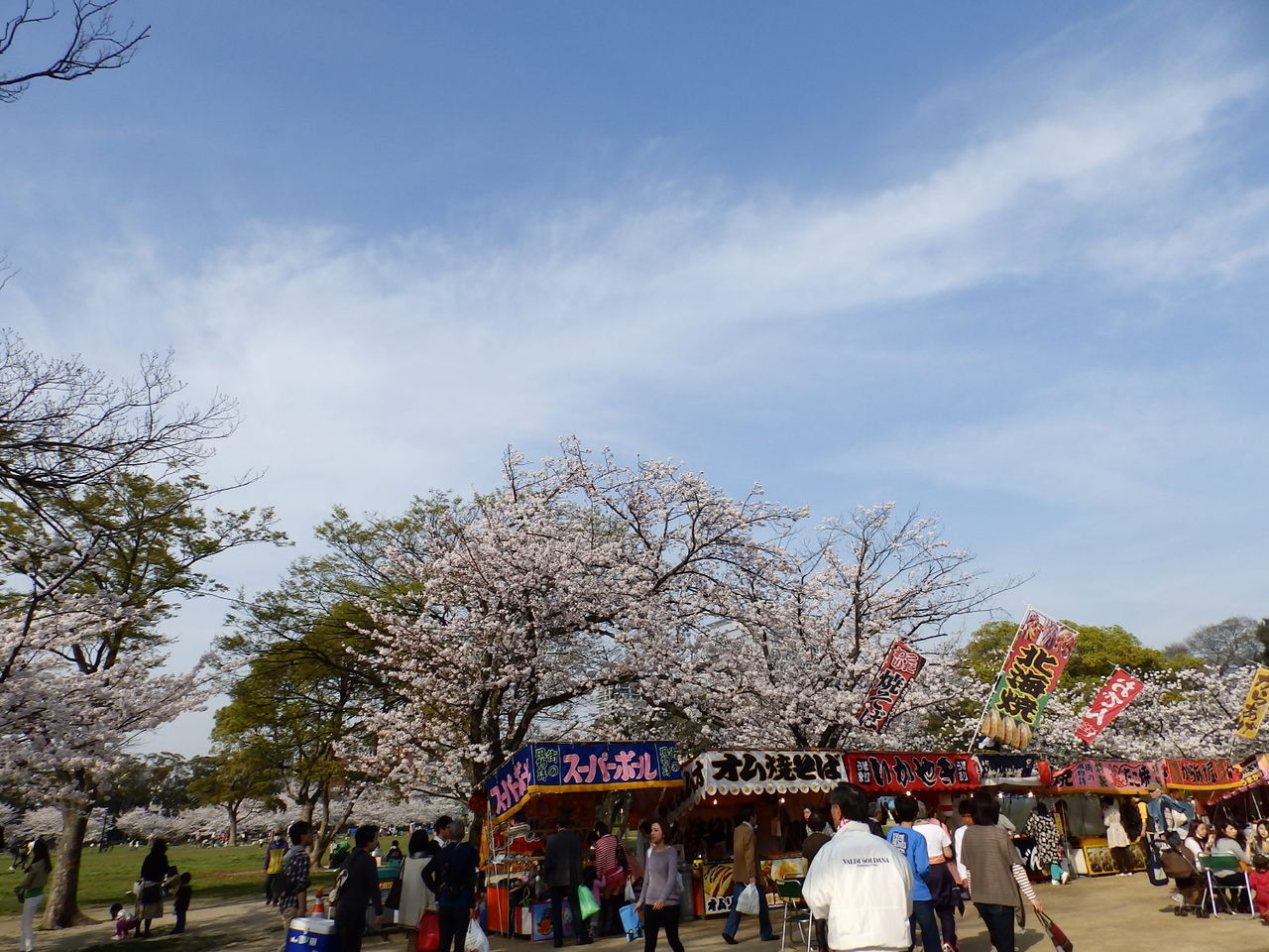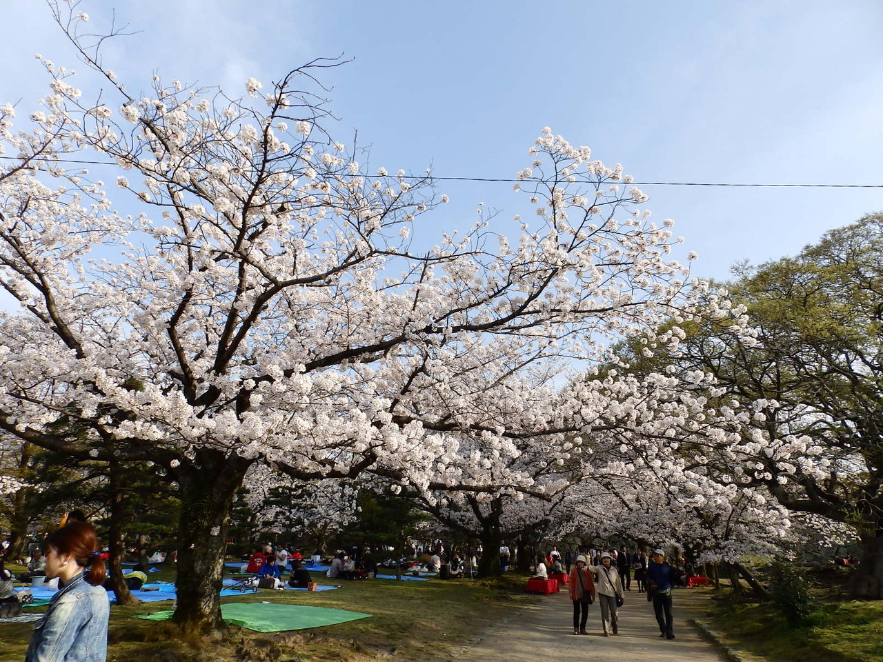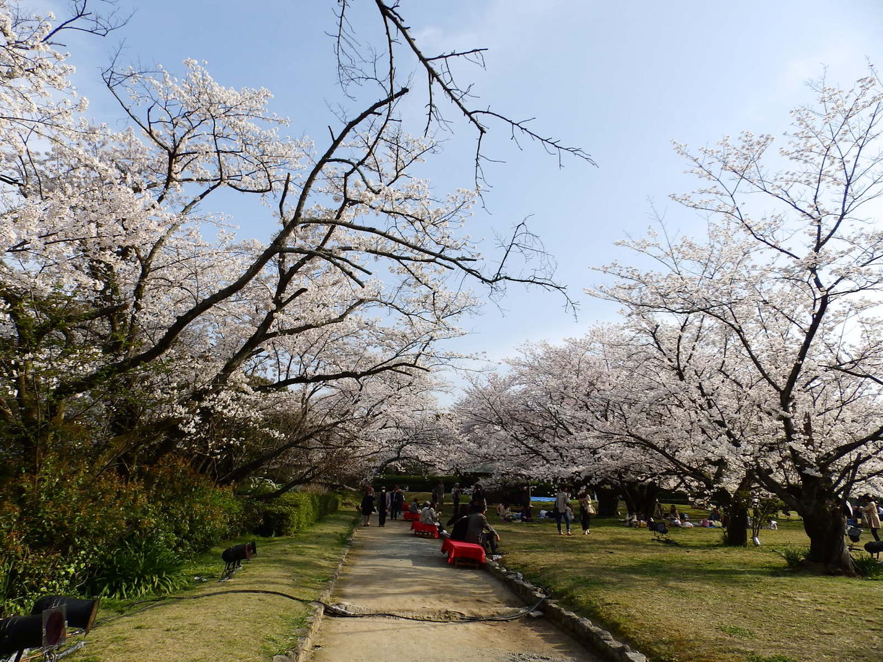 こちらではあちこちにシートが広げられて花見の宴会をしている人がいます。