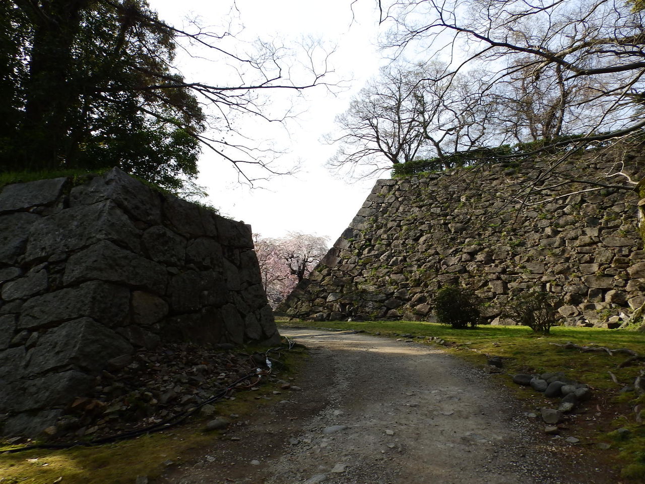 鴻臚館跡展示館の脇道の東二の丸桜が咲き乱れています。