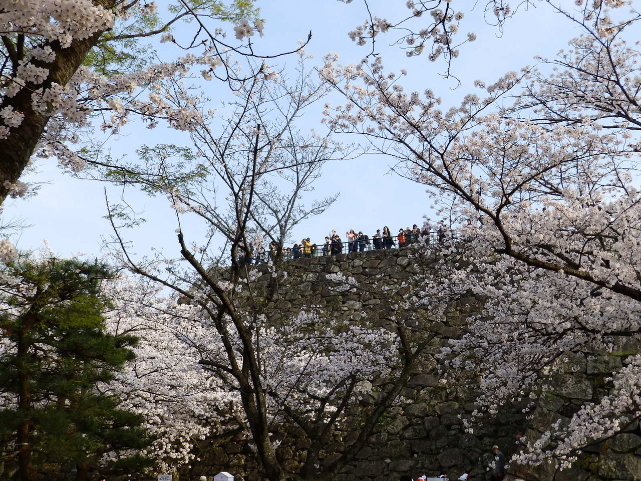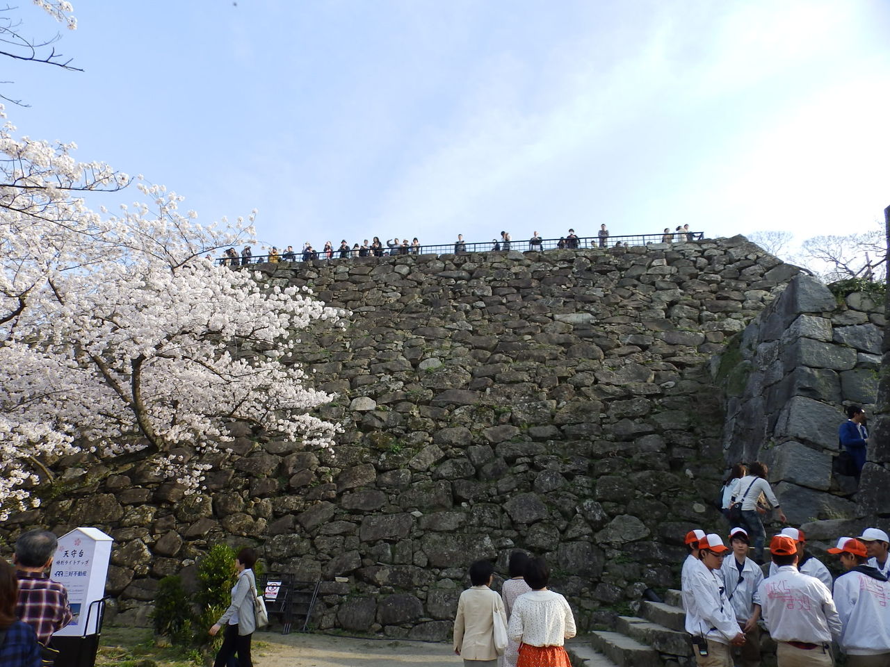 天守台の展望所には眺めを楽しんでいる人たちがいます。