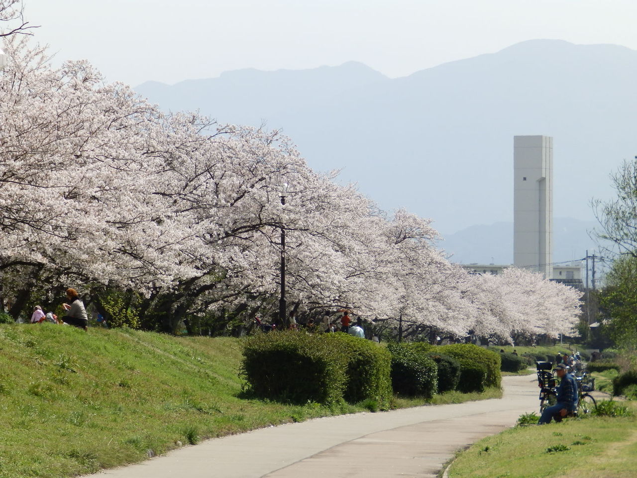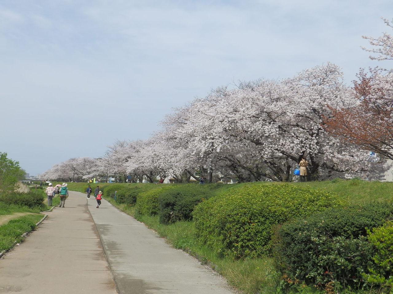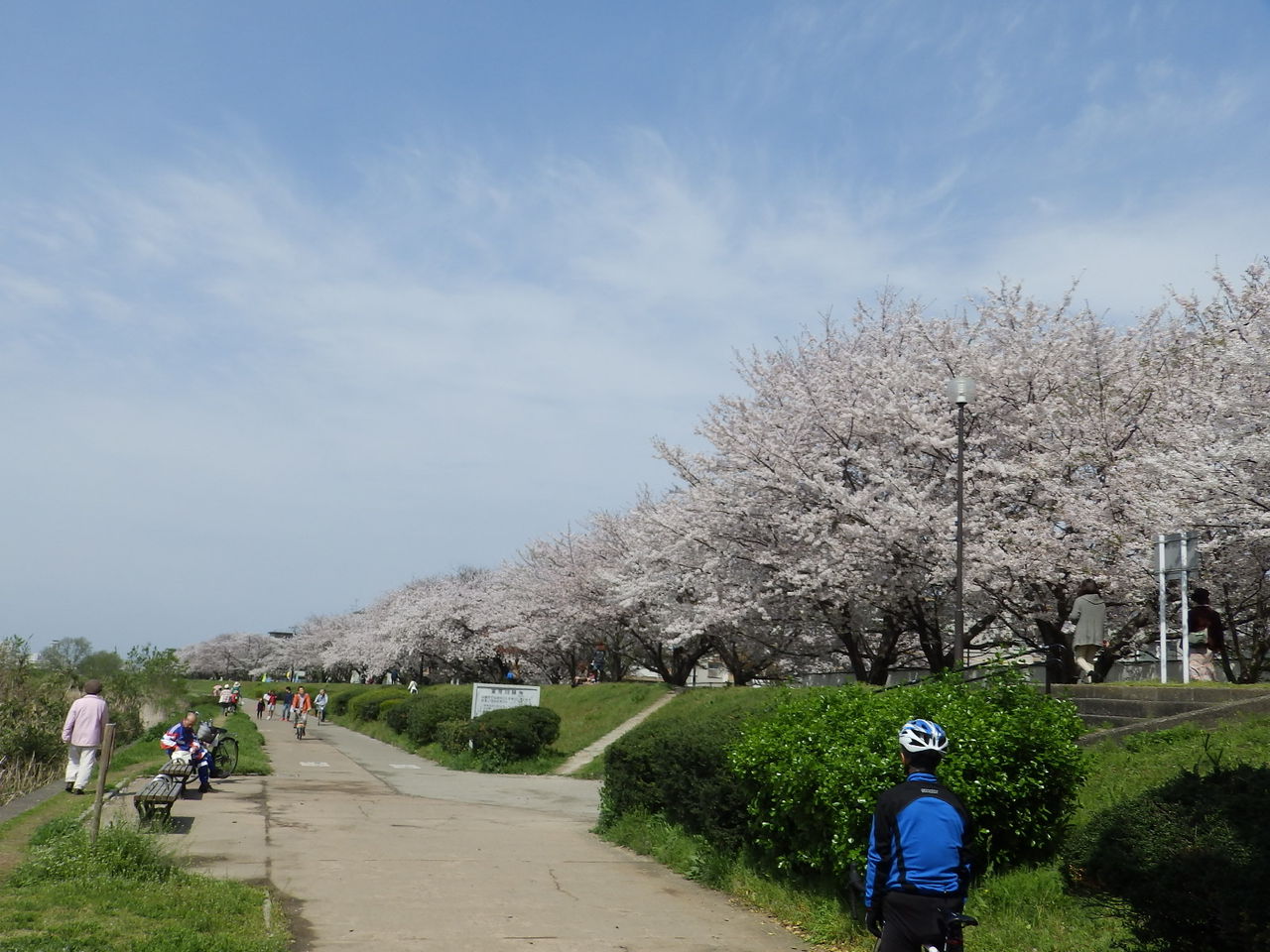 河畔の遊歩道に戻り、桜を鑑賞することにします。