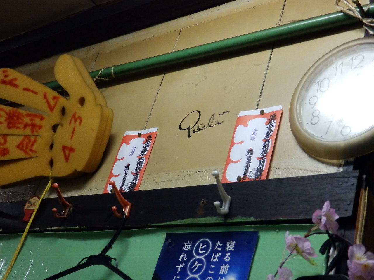 木梨憲武が来店したときに書いたPeleの文字が壁に残っています。