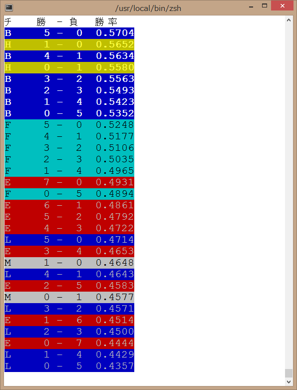 プロ野球勝率予測計算Perlスクリプト・改版にチーム別に色を付くようにしてみました。