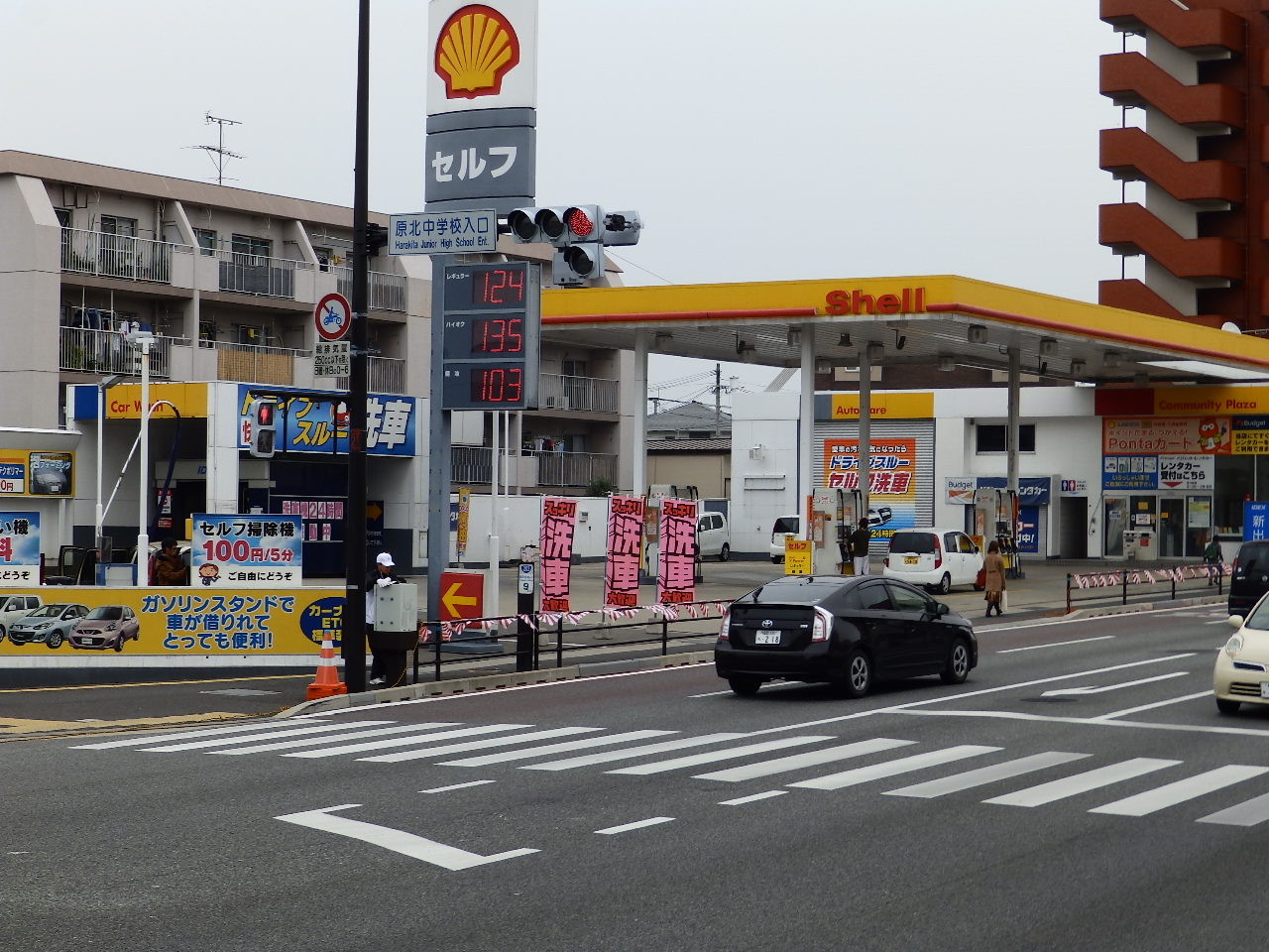 時間を表示した車が通過していきます。