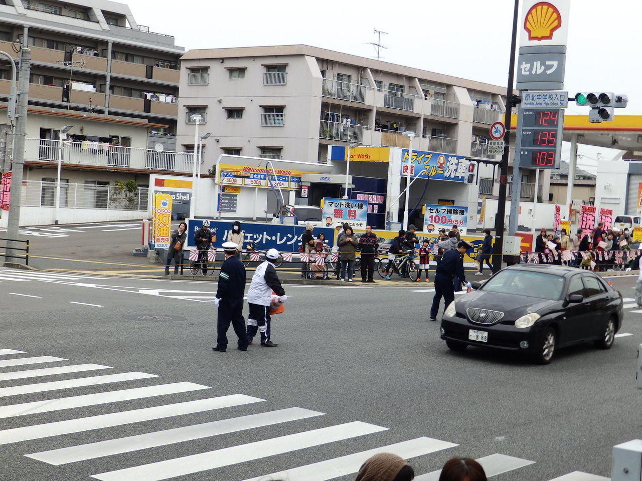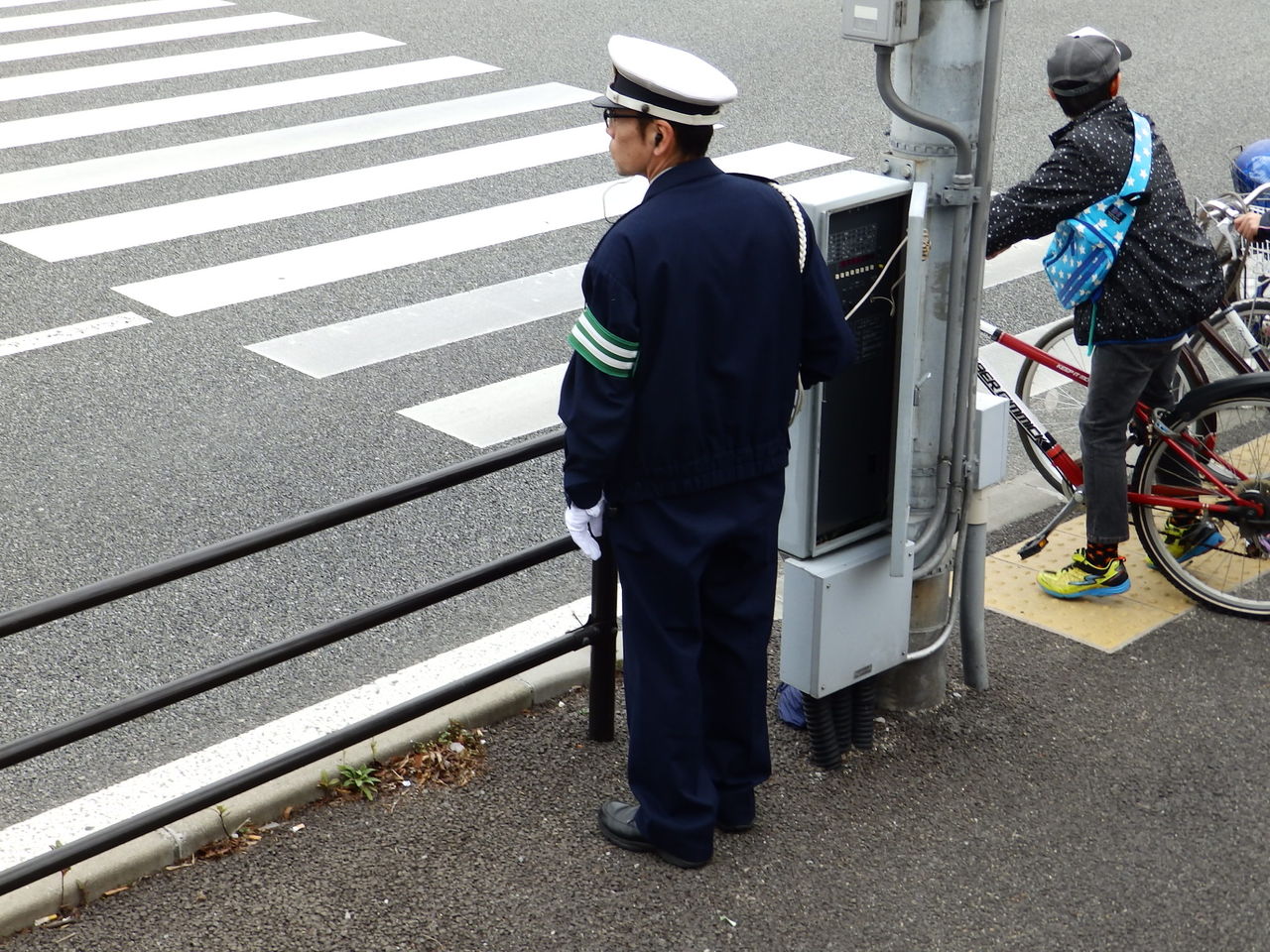 この白バイの警察官が、この二台が通過してから信号を操作してください、とのことで、マラソンのためにずっと青信号に固定されていた信号が手動で操作されます。